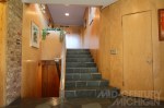 Built in 1954, this four-bedroom home was commissioned by the president of a fire sprinkler company, whose special touch lives on in one of the unusual features of the house: a sprinkler system in the basement. Set into a hill, the house is comprised of four tiered, flowing volumes. The main level contains a large living room, library corner, kitchen, dining room, and breakfast nook. At the top of a set of stairs connecting the three main volumes of the house lies a landing, illuminated by a clerestory window. From here, doors which seem to blend in with the birch-veneered walls, lead to the sleeping arrangements and an office.  Below the main floor is a long entry foyer which lies alongside the garage. This entry hall is flanked by built-in closets and cabinetry also covered in birch veneer, a common material throughout the main stairway. “You can tell this house was extremely well built,” remarks the current owner, David. “There has been little to no settling,” he mentions as he pops open one of the tightly-fitted cabinets, which swings out on hidden hinges. This entry hall, dubbed “the mud room” leads into the lounge and bar, which continue out onto the back yard. A descent from this lounge leads to the lowermost level, a true basement which houses a spare bedroom and utilities.
